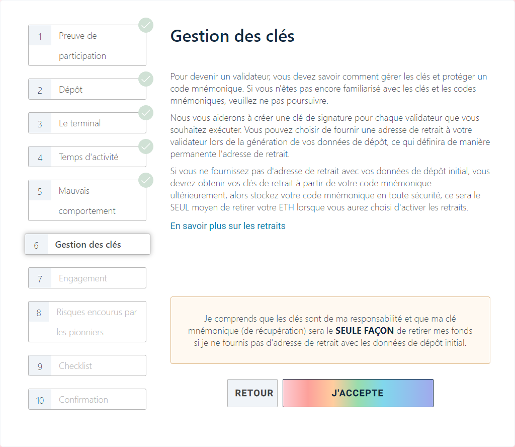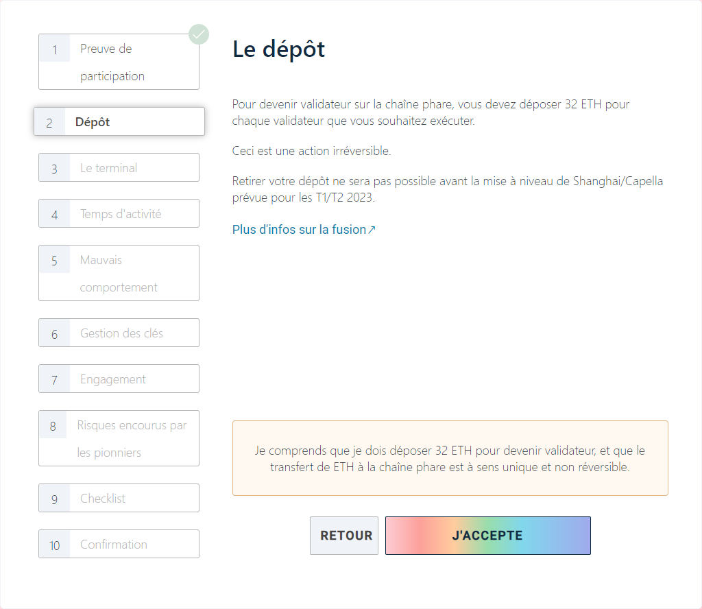 Les dépôts de staking sont traités via la plateforme de lancement ethereum.org :
