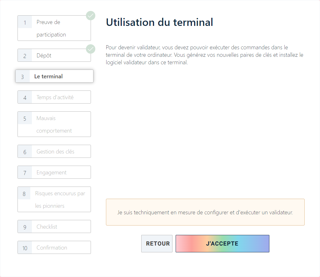 Félicitations ! Vous avez enclenché le processus pour activer votre validateur.