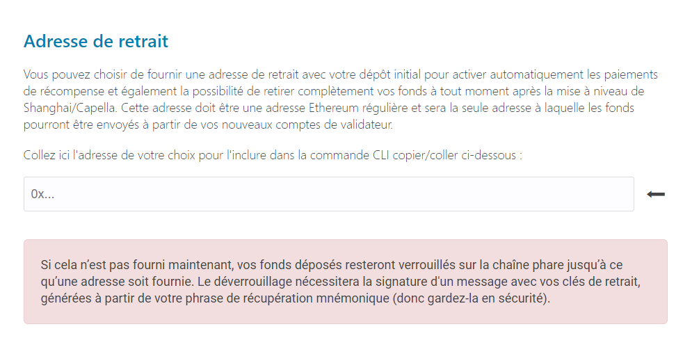 Définir une adresse de retrait pour vos récompenses ou en cas de sortie du validateur